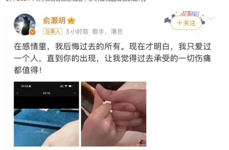 5月17日,俞灏明晒出钻戒表白女友王晓晨并配文:“现在才明白,我只爱过一个人直到你的出现让我觉得过去承受的一切伤痛都值得!”据悉,两人因合作网剧《惩戒者》相识,2024年6月低调官宣恋情后,多次被偶遇情侣装出行。
